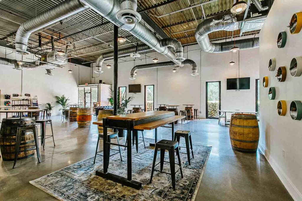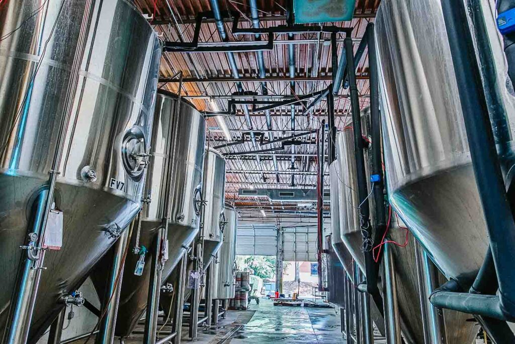 Complex adaptive reuse of an old industrial space and welding shop into a brewery, restaurant, and event space.